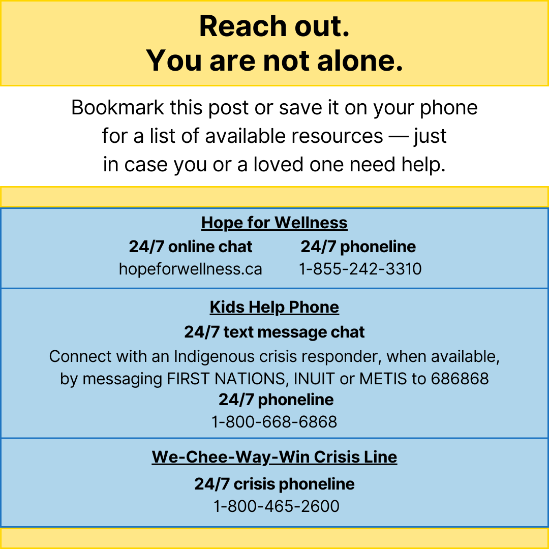 You can also access more resources through PHAC’s Mental Health and wellness page. It includes available resources and services, shareable items for social media, and information about specific mental health topics.