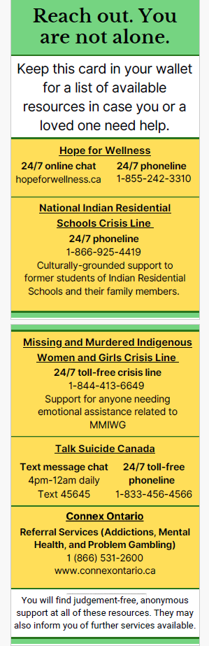 • Chiefs of Ontario Webpage: “Indian Residential School Information and Resources”. Includes mental health supports open for all issues – English